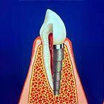 Wie Sie auf der Abbildung erkennen, besteht ein Implantat im wesentlichen aus zwei Teilen: Der implantierten – also chirurgisch „eingepflanzten“ – Metall-„Wurzel“ und einer aufgesetzten Krone. Damit sind Implantate genauso fest im Kiefer verankert wie Ihre natürlichen Zähne. Die Krone läßt sich optisch optimal gestalten.